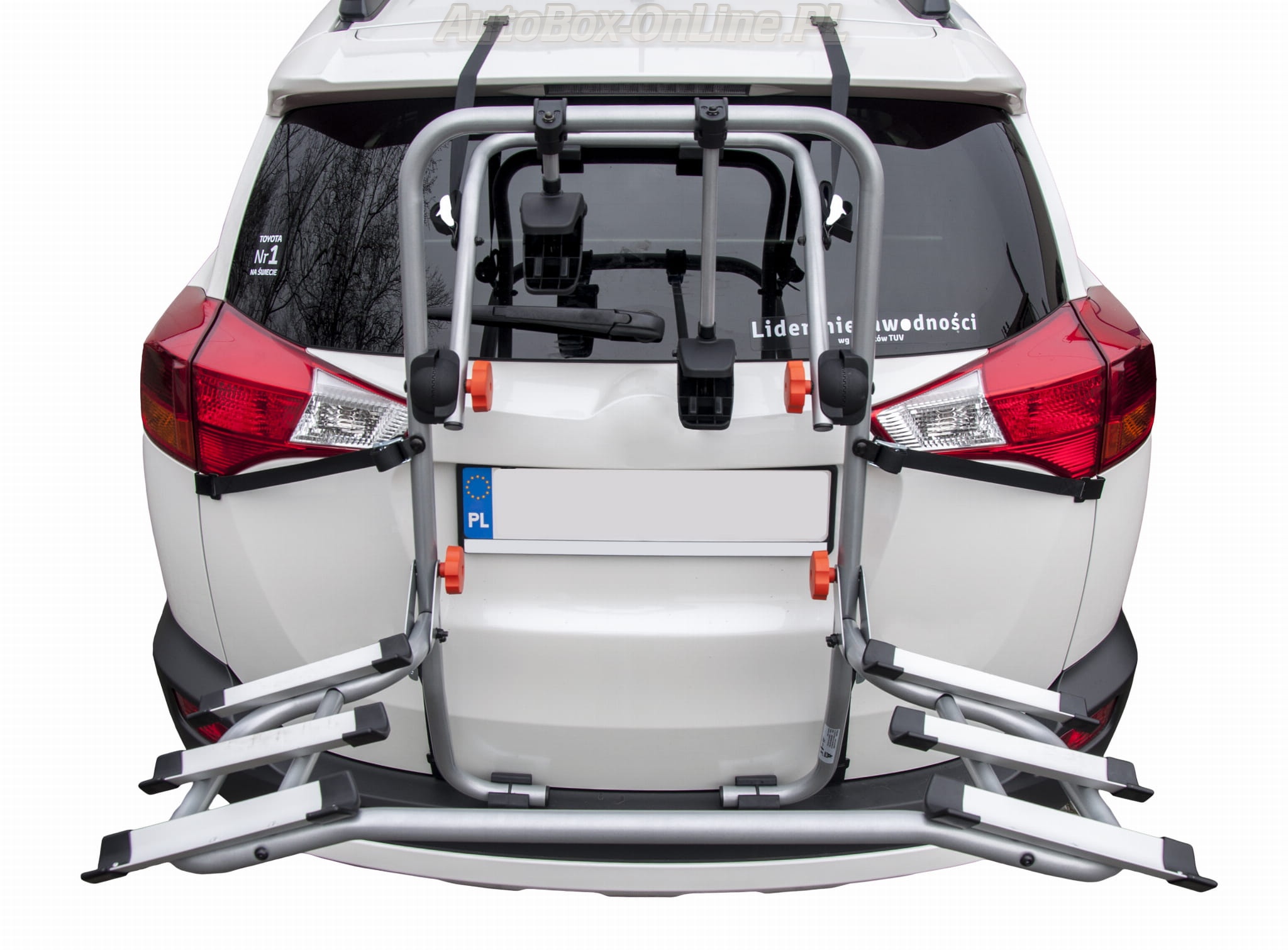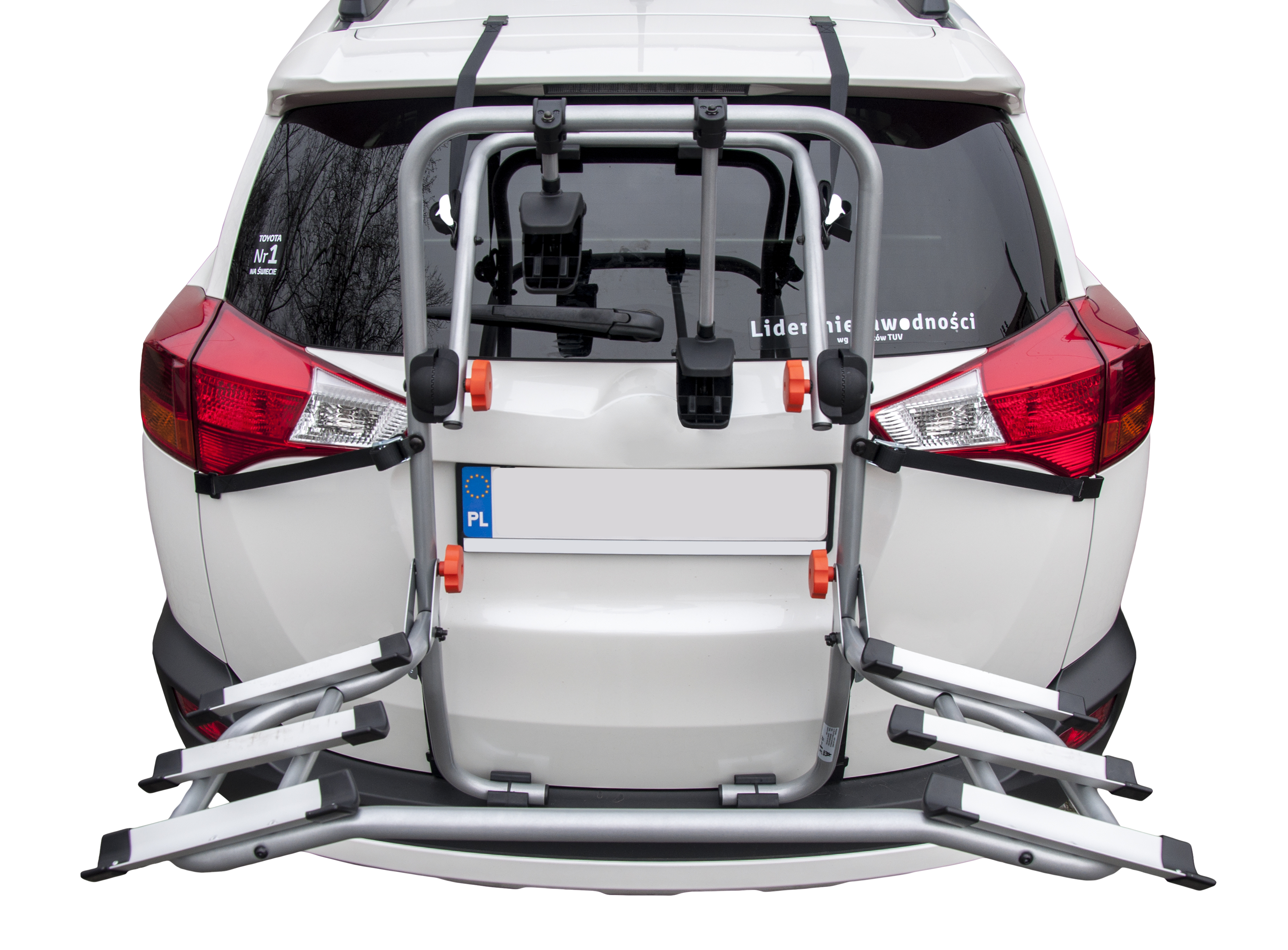 Rowery są umieszczone na tyle wysoko, że nie zasłaniają tablicy rejestracyjnej i świateł.